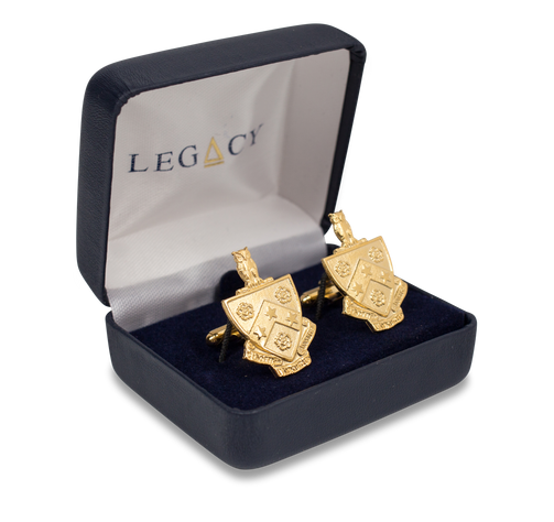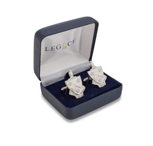 For those who most admire the elegant simplicity of the Phi Gamma Delta coat of arms or "crest", this set of cufflinks is the ideal complement to a Fiji gentleman's wardrobe, or as the perfect gift for groomsmen, graduate, Fraternity Brother -- or as a well deserved personal purchase! Expertly cast in your choice of metal and in modeled detail with finely polished symbols, these cufflinks are securely affixed with the industry's finest "torpedo style" toggle backings. Ideally, pair them as a full formal wear set with the formal shirt stud set also available here. This set of cufflinks comes impressively packaged in our trademarked blue leatherette presentation box, complete with our Legacy Lifetime Warranty. Coat of arms measures approximately 1.0" vertically by 3/4" wide.
