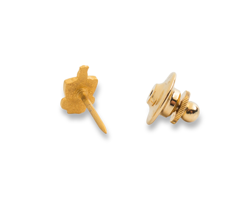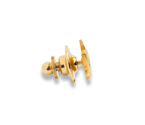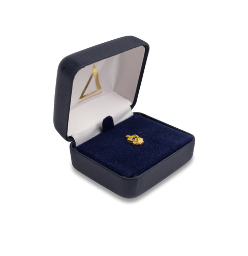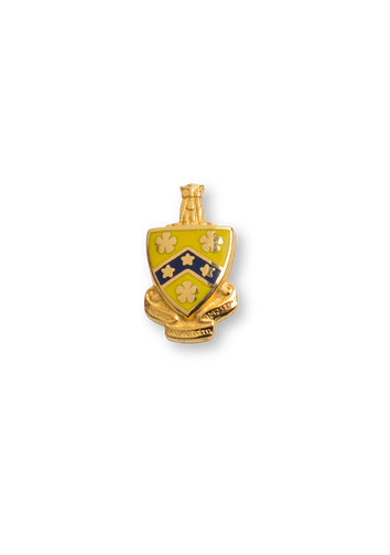 This classic crested lapel pin faithfully represents the Fraternity's official coat of arms. Subtle in size and yet striking in detail, this lapel pin is ideally worn on a sport coat or suit jacket, with a secure post and clutch back assembly behind the lapel. Deftly enameled in purple and gold, this pin measures an intentionally diminutive 1/2" vertically, and 1/4" wide across its shield and chevron.