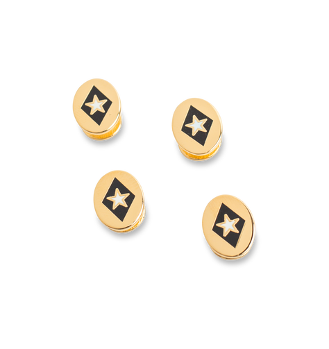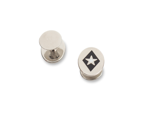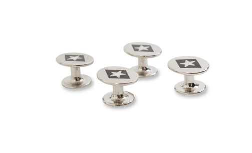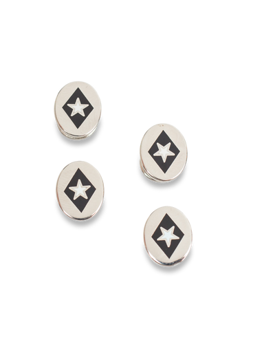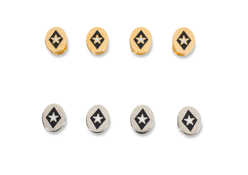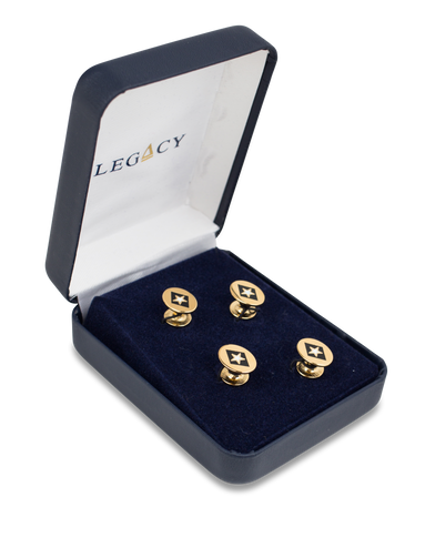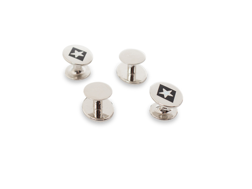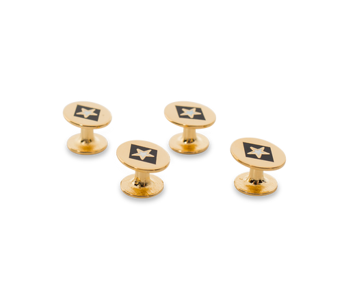 This set of four (4) formal studs, fashioned from the inimitable top of the renowned Fiji Recognition Ring, is the perfect complement to either of the cufflink sets also available here. Cast in one-piece solid construction in your choice of metal, these finely enameled formal shirt studs are an ideal gift to your brethren groomsmen, for graduations or special events, or as a personal purchase to complement your Phi Gamma Delta cufflinks. This distinctive set of four studs is delivered in our handsomely packaged deep blue leatherette presentation box for a lifetime of wear and care, complete with our Legacy Lifetime Warranty. Stud measures 1/2" vertically by 3/8" wide.