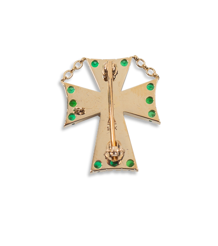 If deep emerald green is a favorite or meaningful color for you, or the gift recipient of this strikingly unique badge, then you have found the perfect match in this larger sized badge, intricately set with 12 emeralds. The Fraternity's sacred golden symbols are deftly revealed through the white-enameled panel, further crowned by the black-enameled Greek letters. Fashioned with customary pin & safety clasp backing. Available in 10K yellow, white gold, or Sterling Silver; comes complete with our Legacy Lifetime Warranty and leather presentation box.