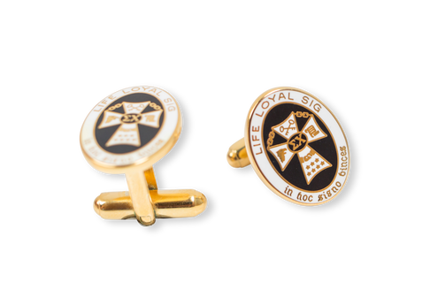 This striking pair of crisply enameled cufflinks utilizes the same official striking die for the Life Loyal Sig lapel pin, available of course only to those in Sigma Chi who have achieved Life Loyal Sig status. These cufflinks, somewhat subtle to non-members and yet undeniably distinctive to Sigma Chi's, are the perfect gift to recognize a Brother achieving LLS status, or as a personal purchase for having done so yourself! Fashioned with durable 'torpedo-style' cufflink actions, and delivered in our blue leatherette Legacy presentation box for a lifetime of wear and care, including of course our Lifetime Warranty.