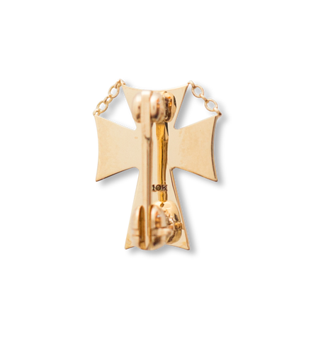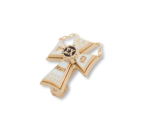 For generations a favorite jewelry piece for presentation to Sigma Chi sweethearts -- both for Chapter sweethearts as well as a Brother's own sweetheart. This dainty and deftly enameled pin measures just 3/8" vertically, thus is about 1/2 the size of the standard Brother's initiate badge. Fashioned with a small pin and safety clasp backing, its small back space allows for a maximum of seven (7) characters if engraved. Available in your choice of 14K Gold or 10K Gold. Comes ready for presentation in our deep blue leatherette presentation box.