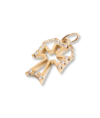 Our imitation diamonds, or cubic zirconia, lend ample sparkle and radiance to this artfully cast pendant, a beautiful yet more budget-friendly choice among those in our badge shaped pendant collection. This pendant's inimitable shape artfully conveys its uniquely Sigma Chi shape to "those who know", but can be worn for its own beauty to non-Fraternity events as simply a stunning neck accessory. Pendant measures approximately 11/16" vertically by 9/16" wide across the center arms. Available in your choice of 10K yellow, white gold, or genuine sterling silver. Comes complete with our Legacy Lifetime Warranty in our deep navy blue leatherette pendant presentation box.